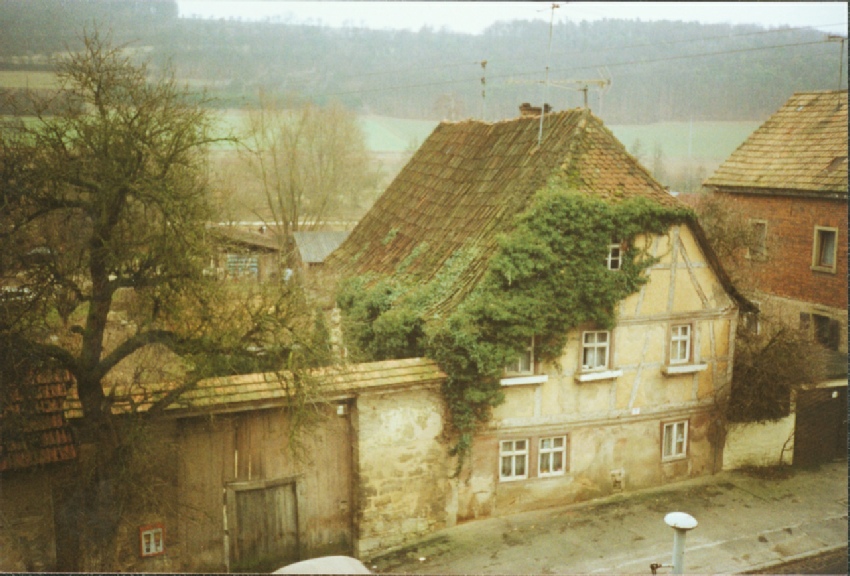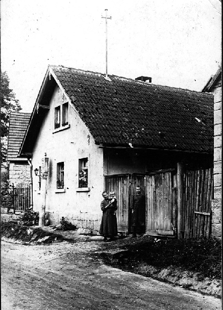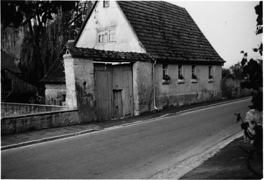 Links Haus-Nr. 15, im Hintergrund links Scheune und Wohnhaus von Anwesen Haus-Nr. 19 . Auf der rechten Seite Haus-Nr .22.