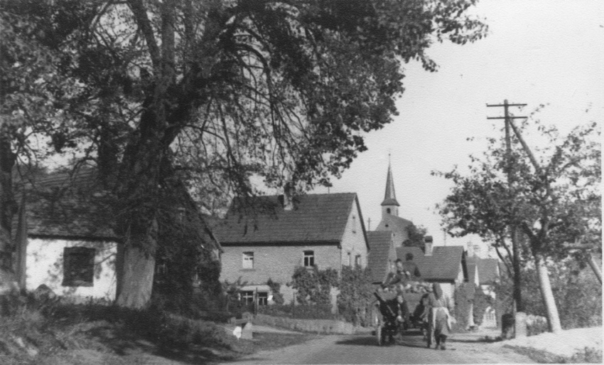 Linke Seite Haus-Nr. 22, rechte Seite Haus-Nr.19 jetzt Bushaltebucht. Ganz rechts die Scheune von Anwesen Nr. 21.