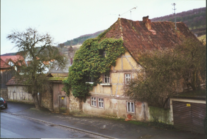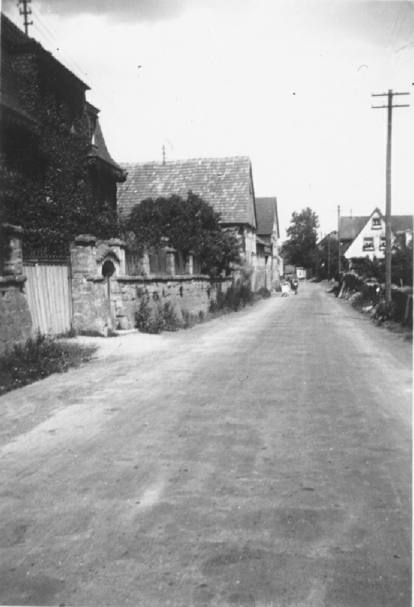 Links Haus-Nr. 15, im Hintergrund links Scheune und Wohnhaus von Anwesen Haus-Nr. 19 . Auf der rechten Seite Haus-Nr .22.